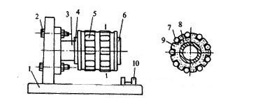1.支架2.螺栓螺母3.鐵襯筒4.內(nèi)檔圈5.耐火筒6.外擋圈7.電加熱絲8.鐵襯筒9.耐火筒10.滑動軸承支架